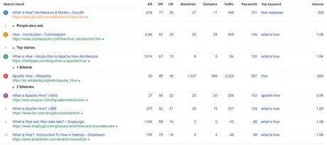 So that's the basic overview to show you how difficult it is to rank a blog post with this particular keyword - What is Hive! Authority websites grab all the top positions, which is an intricate part of rank.
