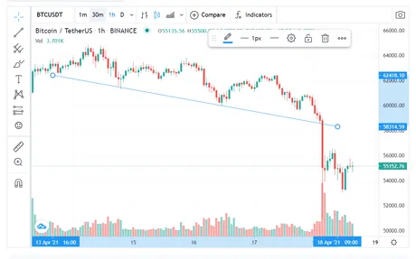 FXHedge tweeted around 12 hours ago. And the market is collapsed significantly after the Tweet. Bitcoin was down by approx $59,700 to approx $54,000 within an hour after the tweet. Etherium and Binance coin is also dropped significantly.
