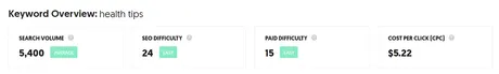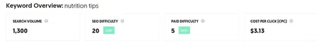 Choose a niche where the difficulty is low and easy to rank. Look at the screenshot. It's easier to rank an article with the keyword "Nutrition Tips" than an article with the keyword "Health Tips." The search volume is low on "nutrition tips," but you can't target all citizens in the world. Narrow down your audience. In the beginning, focus on fewer people.