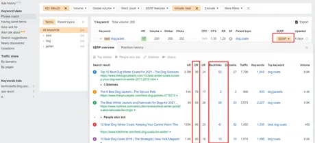 Also, look at the KD (Keyword Difficulty). Keyword difficulty is also high, which is like 78. For me, I prefer to choose a keyword when KD is lower than 20. The remarkable thing Ahref Keyword Tool is, it will also show you all related keyphrases you may also choose.