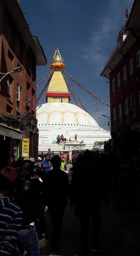 Boudhanath Temple, Kathmandu. Lots of pigeons fly here. This place was buzzing with lots of tourists.