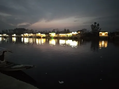 শ্রীনগরের ডাল লেকের পাশে সারি সারি ভাবে দাঁড়িয়ে আছে শতবর্ষ পুরানো হাউজবোট।